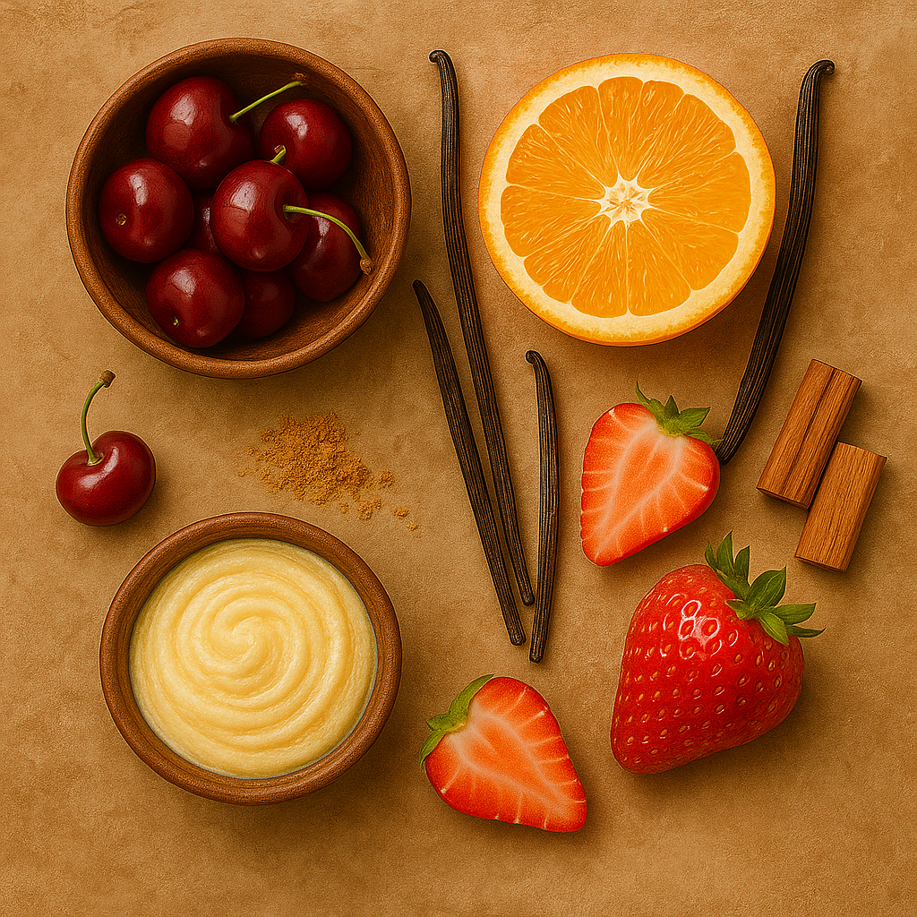 - Notes of strawberry, orange, cherry, vanilla, and sandalwood
